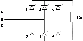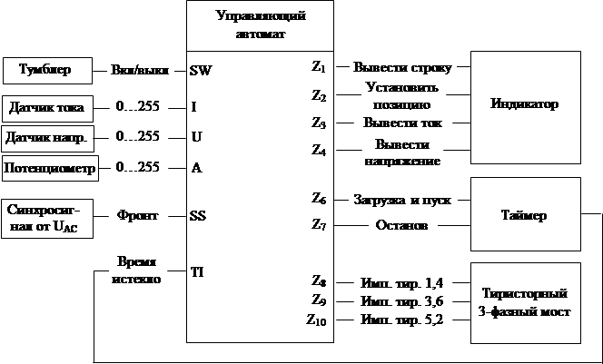 Разработаем программу управления тиристорами трехфазного полного моста автоматным подходом.