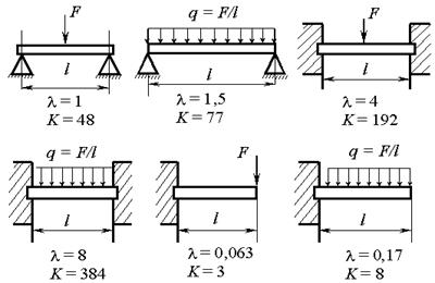 Степень жесткости конструкций РЭС характеризуется коэффициентом жесткости λ, Коэффициент жесткости балки постоянного сечения при работе на изгиб равен