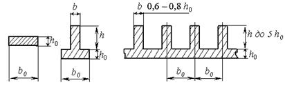 Обычно высота ребер в литых деталях составляет h=5h0, а толщина - не более (0,6 - 0,8) h0. В деталях из тонколистового проката, высоту ребер выбирают из соображения прочности, т. к. толщина их определяется толщиной выбранного материала.