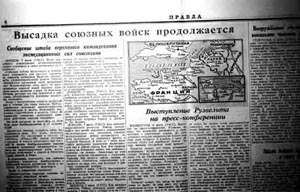 6 июня Англо-американские экспедиционные силы высадились на побережье Нормандии. Началась Нормандская десантная операция союзников – крупнейшая морская операция второй мировой войны, означавшая открытие второго фронта в Европе. Цель операции – создать стратегический плацдарм на европейском континенте для дальнейшего наступления к границам Германии. В операции участвовали также канадские, французские, чехословадские и польские войска.