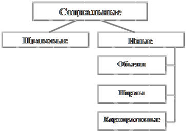 Иные социальные нормы формируются иными социальными институтами и обеспечиваются иными – негосударственными – мерами воздействия. В зависимости от особенностей формирования и обеспечения иных (неправовых) социальных норм они подразделяются на три основных вида:
