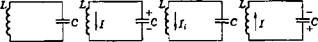 тока и напряжения. Простейшей системой, где могут возникнуть и существовать электромагнитные колебания, является колебательный контур. Колебательный контур — это система, состоящая из катушки индуктивности и конденсатора (рис. а). Если конденсатор зарядить и замкнуть на катушку, то по катушке потечет ток (рис. б). Когда конденсатор разрядится, ток в цепи не прекратится из-за самоиндукции в катушке. Индукционный ток, в соответствии с правилом Ленца, будет течь в ту же сторону и перезарядит конденсатор (рис. в). Ток в данном направлении прекратится, и процесс повторится в обратном направлении (рис. г). Таким образом, в колебательном контуре будут происходить электромагнитные колебания из-за превращения энергии электрического поля конденсатора (Wэ = CU2/2) в энергию магнитного поля катушки с током (wM = LI2/2) и наоборот.