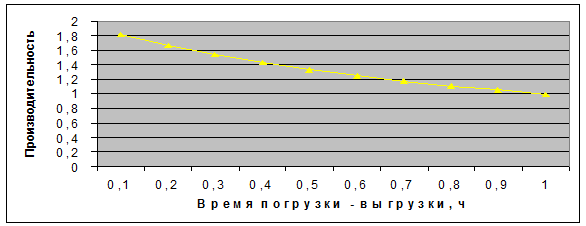 Рисунок 6. Зависимость производительности подвижного состава от времени простоя под погрузкой и выгрузкой.