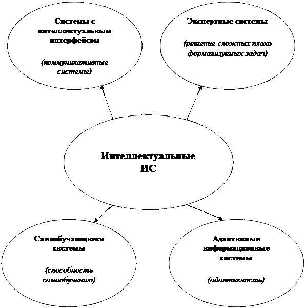 Каждому из перечисленных признаков условно соответствует свой класс ИИС. Различные системы могут обладать одним или несколькими признаками интеллектуальности с различной степенью проявления.