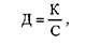 где Д — степень действенности рекламных объявлений; К — число посетителей, купивших рекламируемый товар; С — общее число покупателей, совершивших в магазине какую-либо покупку.