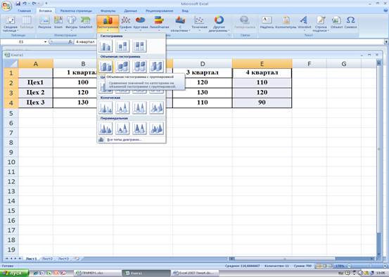· Выделить диапазоны А1:А4, С1:С4 и Е1:Е4 для создания диаграммы сравнения данных за 2-й и 4-й кварталы.