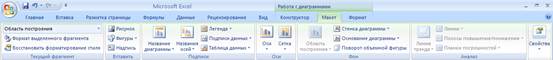 Рис. 4. ГруппаВкладок Работа с диаграммами - Вкладка Макет