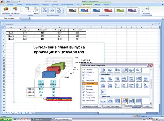 После выбора в нем нового типа диаграммы, создаваемая диаграмма трансформируется в этот тип (См. Рис. 16).