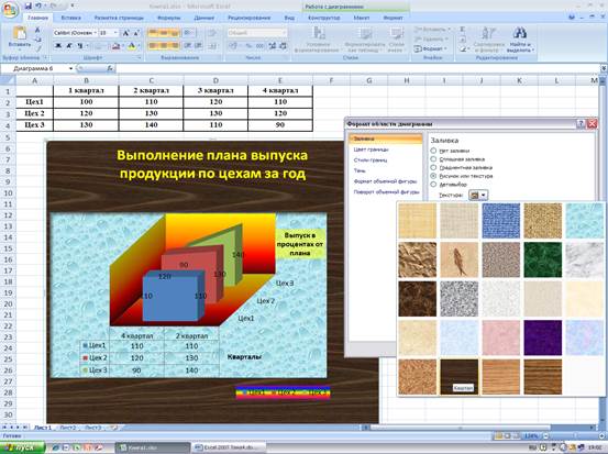 Рис. 19 Организация Фонов для Области диаграммы и Области построения