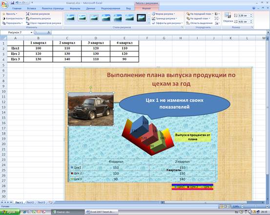 Вставка Рисунков в выделенную диаграмму также может быть реализована: