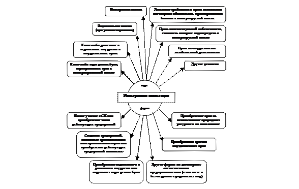 Внешние прямые инвестиции – вложения за границей капитала, размер которого составляет не менее 10% стоимости определенного конкретного инвестиционно-инновационного проекта. Они предполагают контроль партнера над предоставленными капитальными вложениями и его участие в инвестиционном проекте.