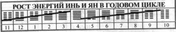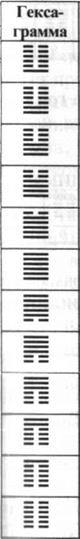 Книга Перемен представляет собой дальнейшее развитие даосской философии. В ней представлены 64 гексаграммы, составленные из всех возможных наборов триграмм. 64 гексаграммы охватывают все человеческое бытие и служат формулой для интерпретации событий, проис ходящих в мире. Каждая гексаграмма обладает специфическим значением. Особый смысл для нас имеют следующие 12 гексаграмм, связанных с 12 месяцами года. Они отражают годовые вибрации инь и ян и их следует визуализировать в указанный месяц.