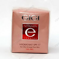 Крем увлажняющий для комбинированной и жирной кожи SPF 17 (проф. израильская марка GIGI, серия "Vitamin E"). Очень достойная вещь для обладательниц жирной, комбинированной и пористой кожи. Легкая обезжиренная (oil free) эмульсия. Быстро впитывается. Матирует, увлажняет кожу и успокаивает её. Содержит рисовый крахмал, сквален, витамин Е, гель алоэ, аллантоин, камфара, экстракт стенки дрожжей. Так что кремчик хорошо подойдёт и обладательницам чувствительной комбинированной и жирной кожи. Для обладательниц комбинированной кожи подойдёт в теплую погоду как дневной крем, для жирной кожи - как дневной крем весной-летом-осенью. Не имеет возрастных ограничений.