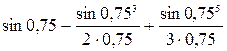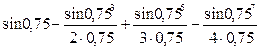 Сначала переменным присваиваются значения: х=0,75; k=3; n=2; E=0,01; s=sin 0,75. Потом вычисляется