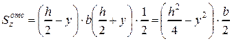 Полагаем, что в заданном сечении Q >0. Используя формулу Журавского (4.10), определим напряжения t на уровне y. Для этого запишем соотношения для всех величин, входящих в формулу Журавского, через размеры прямоугольного сечения