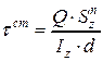 Максимальные касательные напряжения в сечении, как правило, действуют в области оси z, однако есть исключения (сечения, вытянутые в области оси z по ширине).