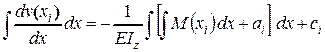 Для определения прогиба и угла поворота произвольного сечения балки методом непосредственного интегрирования уравнения (4.18) необходимо на каждом участке балки записать в принятой системе координат аналитическое выражение для изгибающего момента в форме