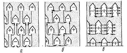 а – рядное расположение коробов; б – диагональное расположение коробов; в – жалюзийные короба