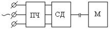 - Частотный. Частотный пуск применяется только в том случае, если СД подключен к автономному источнику, частоту напряжения которого можно изменять от нуля до номинальной (ПЧ). Регулирование частоты производится плавно, чтобы ротор успевал входить в синхронизм. М – механизм нагрузки.