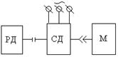 - С пом. разгонного двигателя. Требует наличие дополнительной машины. СД при этом способе пуска разгоняют, за счет разгонного двигателя РД. Затем подключают нагрузку (М) на вал СД, а разгонный двигатель отключают.