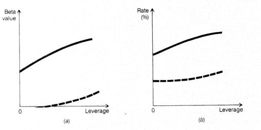 Бета обыкновенных акций компании зависит от уровня финансовой зависимости компании. Если величину финансовой зависимости измерять как отношение величины займа (и привилегированных акций) к общей стоимости выпущенных ценных бумаг, бета обыкновенных акций будет увеличиваться вместе с ростом финансовой зависимости (рис. 14.2а). Поскольку риск для акционеров увеличивается с ростом финансовой зависимости компании, требуемая акционерами норма прибыли также увеличивается (рис. 14.2б). Компромисс между риском и прибылью анализируется в терминах влияния финансовых решений на стоимость акционерного капитала компании.