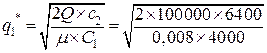 Экономически целесообразный размер заказа с учетом цены поставки проката определяется из выражения (17.3), преобразовав с1 в μ × С: