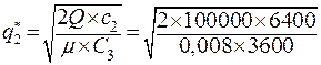 S = (q / 2) × c1 +(Q / q) × c2 = (10000 / 2) × 20 + (100000 / 10000) × 6400 = 164000 руб.