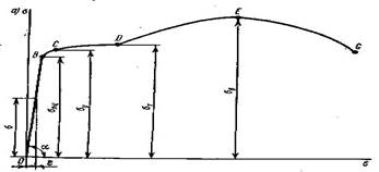 - предел текучести (точка D. на этом участке деформации увеличиваются, а напряжение постоянно);