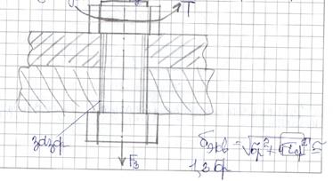 Такой тип болтового соединения рассчитывается по 2-ум типам напряжений (по δр и по δизгиба)