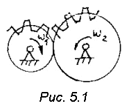 Зубчатые механизмы предназначены для передачи вращательного движения и преобразования его параметров. Обычно двигатели обладают скоростью и моментом, как правило, не подходящим для использования в технологическом процессе. Преобразование параметров вращательного движения возможно посредством прижатых друг к другу гладких дисков (рис. 5.1), образующих фрикционные передачи. Ее недостаток – ограниченная мощность из-за большой нагрузки на подшипники, неизбежное проскальзывание, износ поверхностей, потери мощности. Практически передаваемая мощность в таких механизмах не превышает 10 – 20 квт.