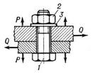 Болтовое соединение, распространённый тип резьбового соединения болтом и гайкой. Обычно в отверстие соединяемых деталей болт вставляется с зазором, и соединение осуществляется затяжкой гайки, что создаёт давление между деталями, препятствующее их расхождению (раскрытию стыка) под действием осевых сил (Р) и относительному сдвигу под действием поперечных сил (Q), благодаря возникающему между деталями трению. Реже болт плотно входит в отверстие соединяемых деталей и препятствует относительному их сдвигу под действием поперечных сил, работая на срез; в этом случае стержень болта и отверстие детали обрабатываются с высокой точностью и при той же поперечной силе болт получается тоньше.