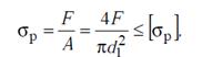 Диаметр болта = d1>=√(4F/ π[σ]р)