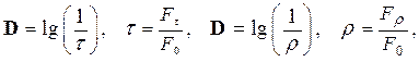 Качество воспроизведения графических изображений принято оценивать динамическим диапазоном (D),численно равным десятичному логарифму величины, обратной коэффициенту пропускания