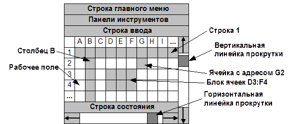 Рис.9.1.Типовая структура пользовательского интерфейса табличного процессора.