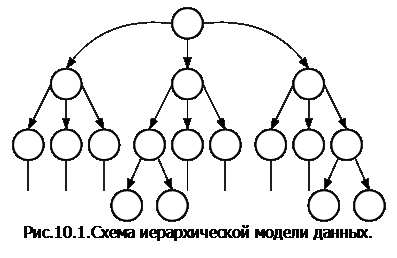 Иерархические БД – их структуру можно представить в виде дерева (рис.10.1), причем объекты нижних уровней являются частью объектов верхних уровней (каждый объект имеет ровно одного родителя).
