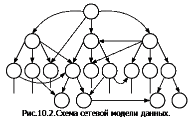 § Сетевые БД – наподобие иерархических (рис.10.2), но каждый объект может иметь больше одного родителя (структуру можно представить в виде графа). Фактически сетевая модель является расширением иерархической.