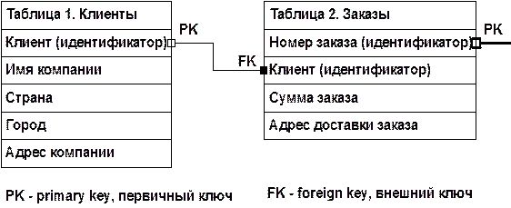 Рис.10.5.Пример БД с внешним и первичными ключами.