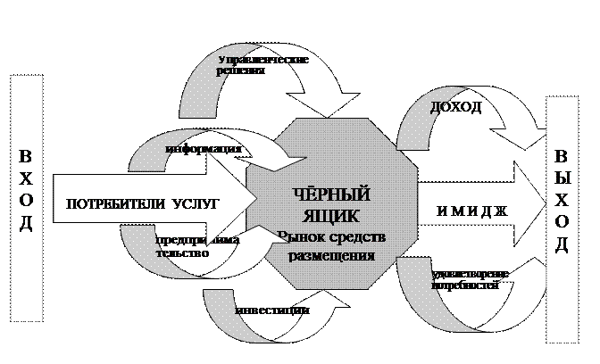 Систему рынка гостиничных услуг можно схематично представить как «чёрный ящик» (рис. 1), на входе которого основные составляющие рынка, а на выходе результирующие компоненты.