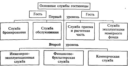 Типовая структура гостиничного предприятия объединяет различные службы. На первом месте стоит внутренняя организация, которая призвана руководить работниками и направлять их деятельность на достижение целей предприятия.