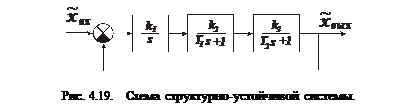 Заменим одно из интегрирующих звеньев на апериодическое (рис. 4.19). В этом случае передаточная функция системы запишется в виде: