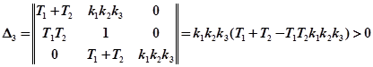 Матрица Гурвица для рассматриваемого случая запишется следующим образом:
