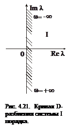 Построение кривой D–разбиения еще не решает вопроса о выделении области устойчивости. Последняя должна представлять собой совокупность точек плоскости, в которых все корни характеристического уравнения замкнутой системы имеют отрицательные вещественные части. В то же время кривая D–разбиения представляет собой только совокупность точек, в которых характеристическое уравнение имеет, по крайней мере, хотя бы один чисто мнимый корень