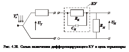 за счет снижения размеров термопары приводит к снижению ее прочности и ресурса. Поэтому для улучшения динамических характеристик термопар применяют КУ в виде дифференцирующего