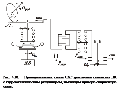 Дифферецирующие КУ можно реализовать и в гидромеханических регуляторах, например, в агрегатах дозировки топлива (АДТ) двигателей семейства НК (рис. 4.30). Подпружиненный с обеих сторон поршень выполняет роль электрической емкости