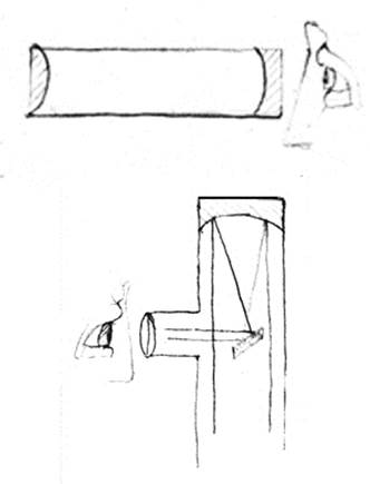 Рис. 4.5 Телескоп Галилея (вверху) и телескоп Ньютона (внизу)