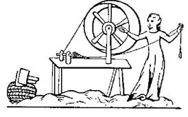 Рис. 6.6. Технология прядения в XIV веке. Колесо попеременно