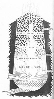 Рис. 7.1. Химические процессы в горне шахтного типа