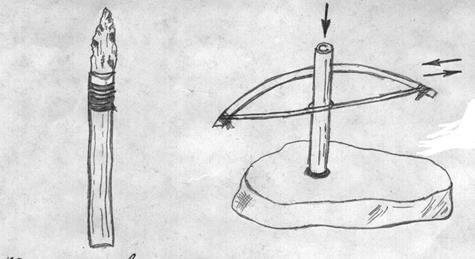 Рис. 8.1. Каменное сверло в разрезе древка (слева)