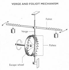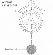Рис. 9.3. Механизм маятниковых часов с анкерным спуском