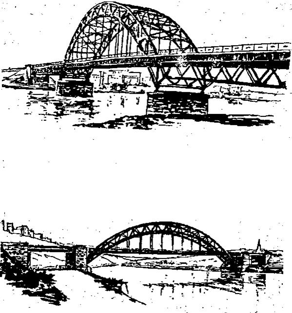 Рис. 10.15. Арочно-консольный городской мост, 1937 год (вверху).